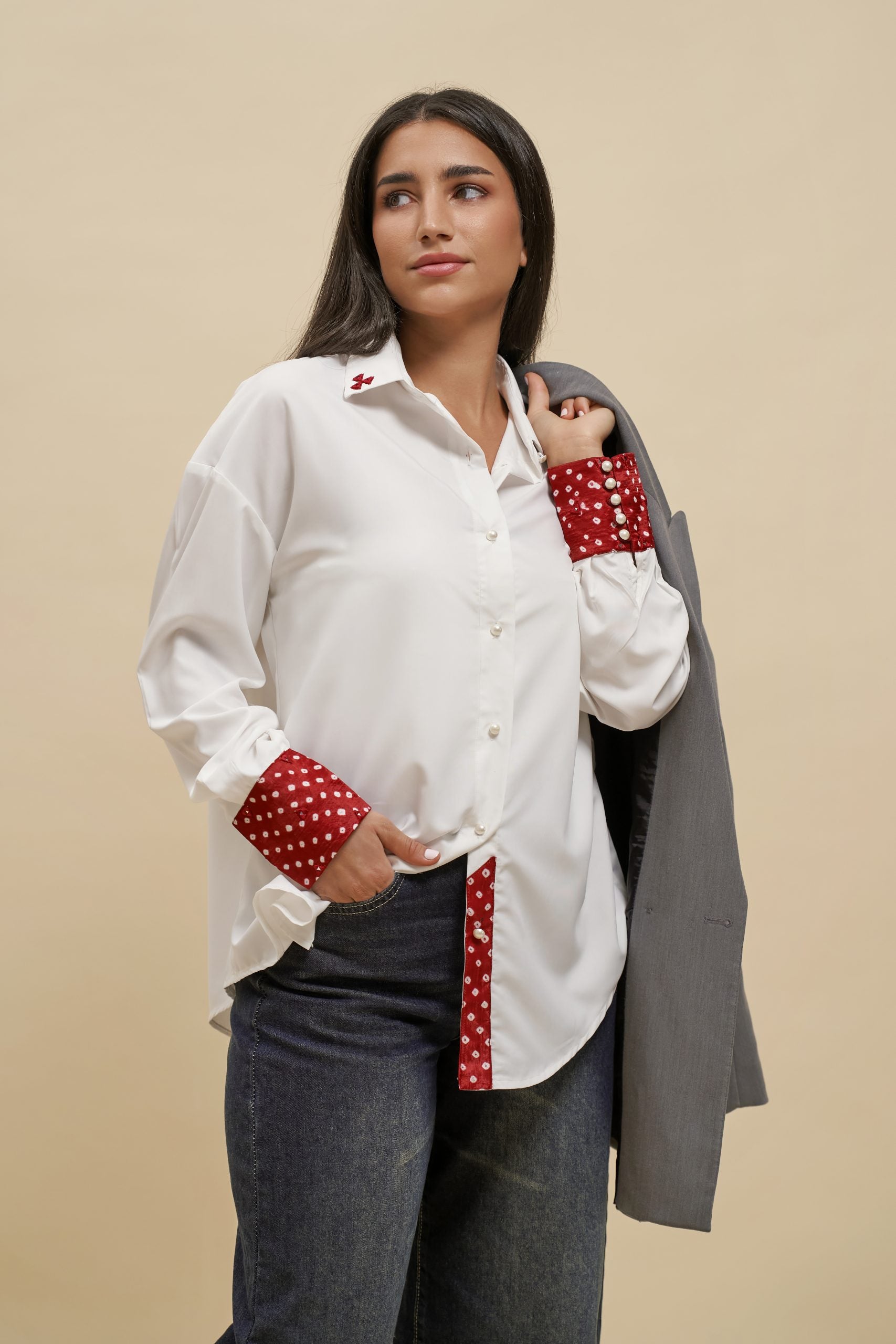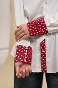 Fall in love with the perfect fusion of classic ‘chunri’ print and timeless denim — the deep red chunri is a bold, irresistible favorite.